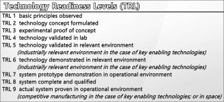 On the other hand, TRLs are not intended to order or compare technologies based on their complexity, likeability, or innovativeness. So, higher TRLs do not necessarily indicate more advanced or impactful technologies. Though you can customize or extend your TRL metrics to cover these and other dimensions of your choice as in this example. TRLs can also be used for non-technological innovations as foreseen by Horizon 2020, the current EU research and innovation framework program. Below left is Annex G of its 2016-17 Work Program, which is the official reference within Horizon 2020. Below right is a slide from an EC presentation, which helps understand the definitions. (You can click and view their bigger versions in a new tab/window.)